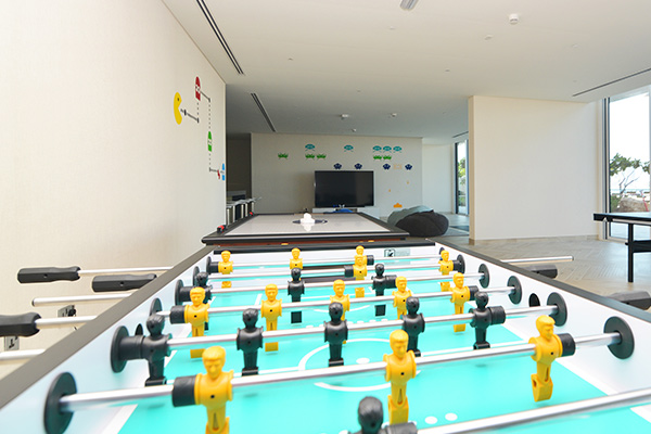غرفة ألعاب تشمل تنس الطاولة والمزيد